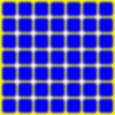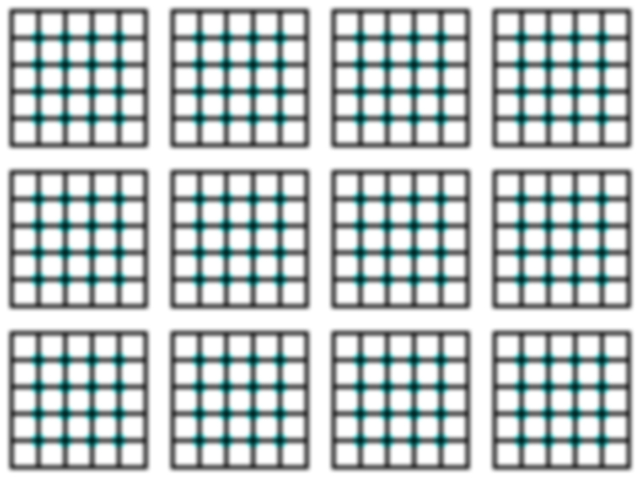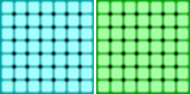 Blue light appears to scintillate in crossings (chromatic Bergen grid illusion).