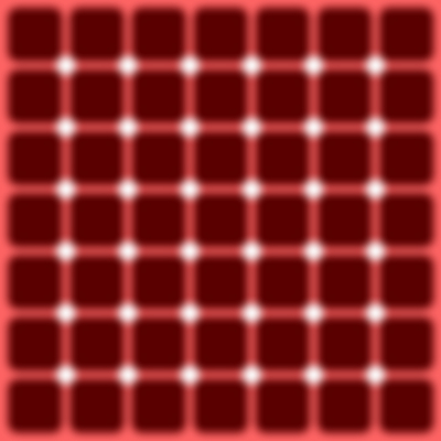 Red light appears to scintillate in crossings (chromatic Bergen grid illusion).