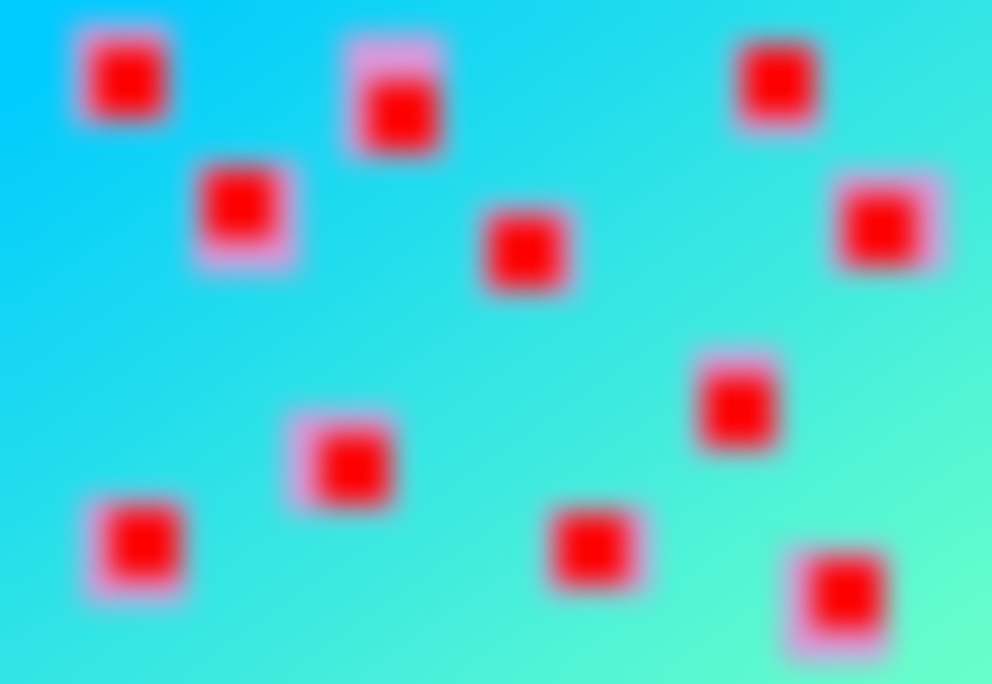 Red scintillating blobs are observed in the center of gaze while white ones are seen in the visual periphery. These effects are strong in binocular viewing.