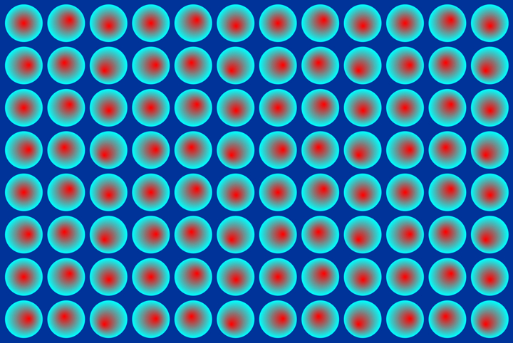 The image appear to scintillatie. The center of each disk appears to twitch after eye movements.