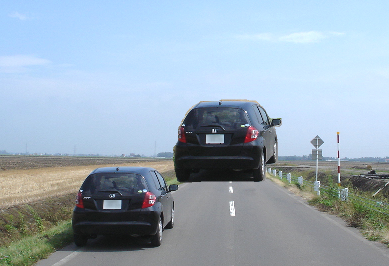 The upper-right car appears to be larger than the lower-left one, the original image, though they are the same size.