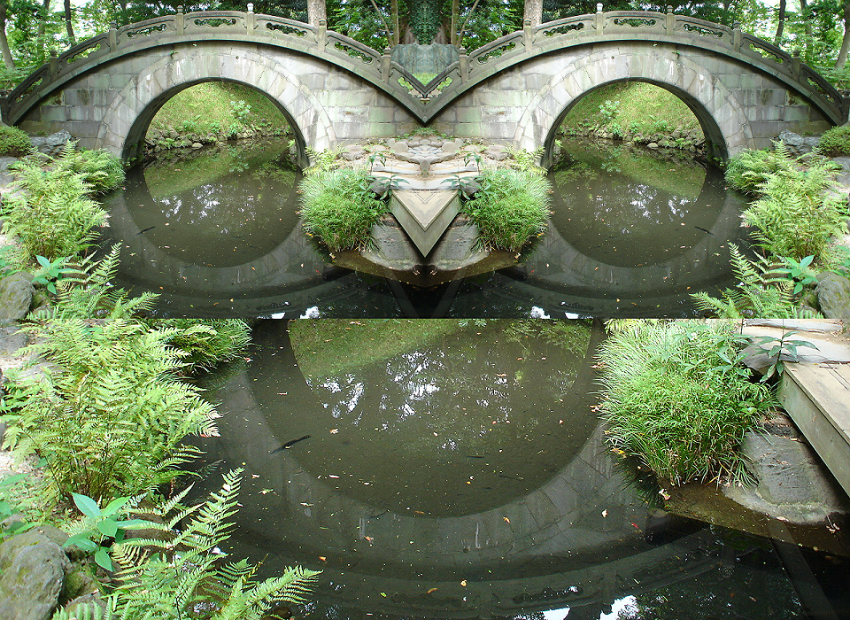 This 'face' is made of a picture of the Engetsu-kyo bridge in the Koishikawa-Korakuen, Tokyo, Japan.