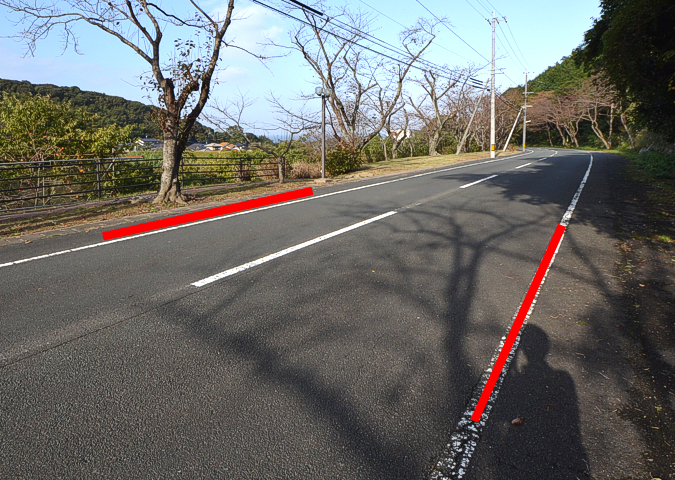 The right red line segment appears to be thinner and longer than the left one, though they are the same in shape and size.