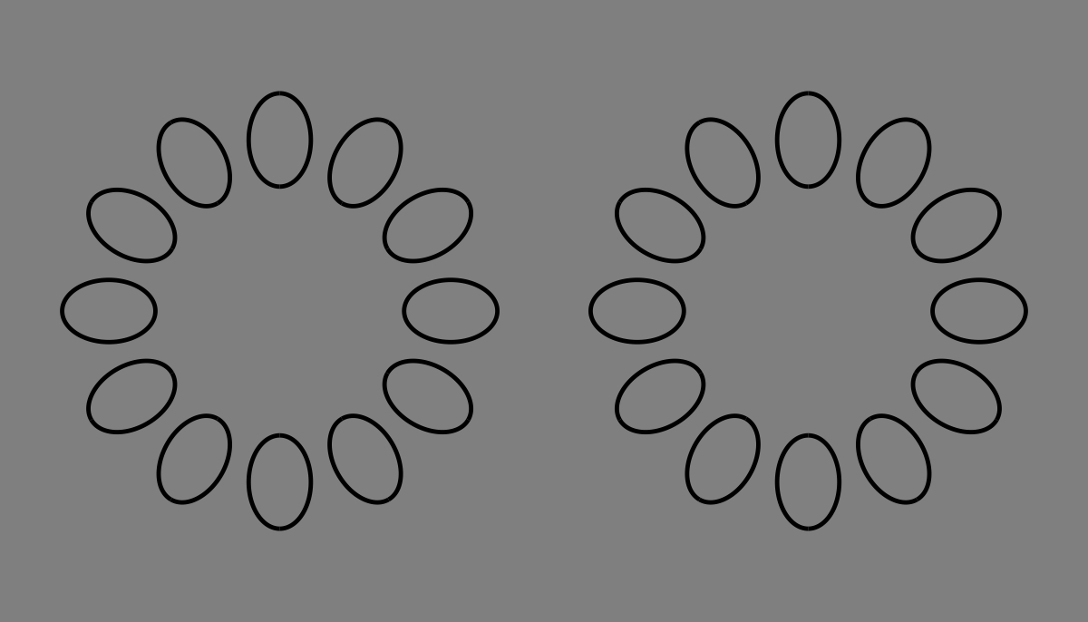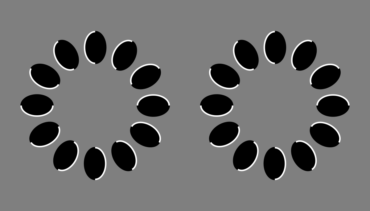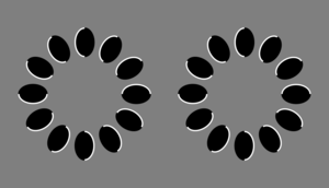 Rings appear to rotate to and fro, though black ellipses are stationary.