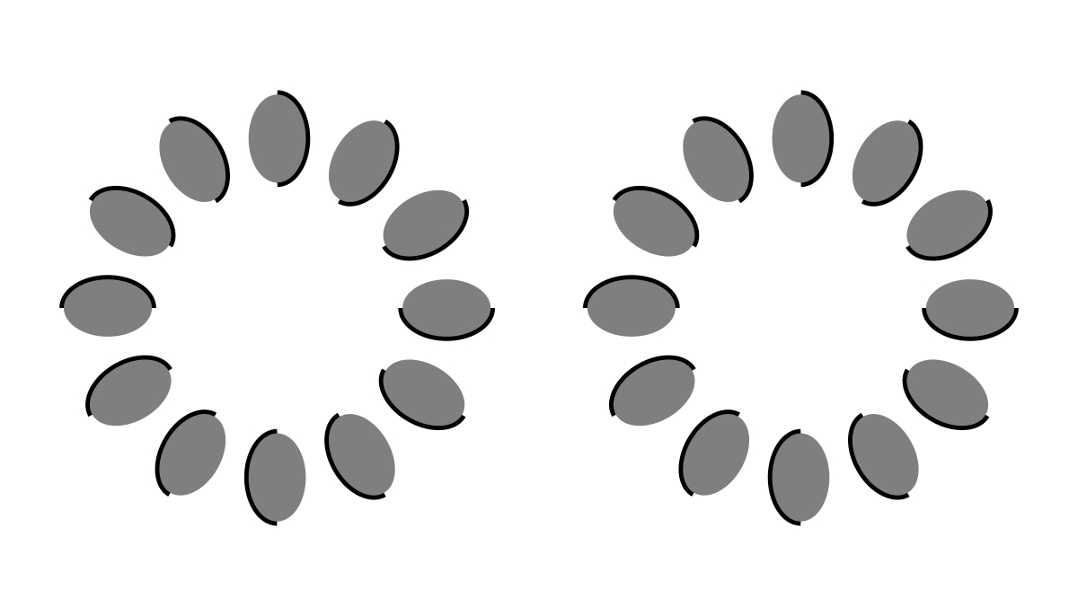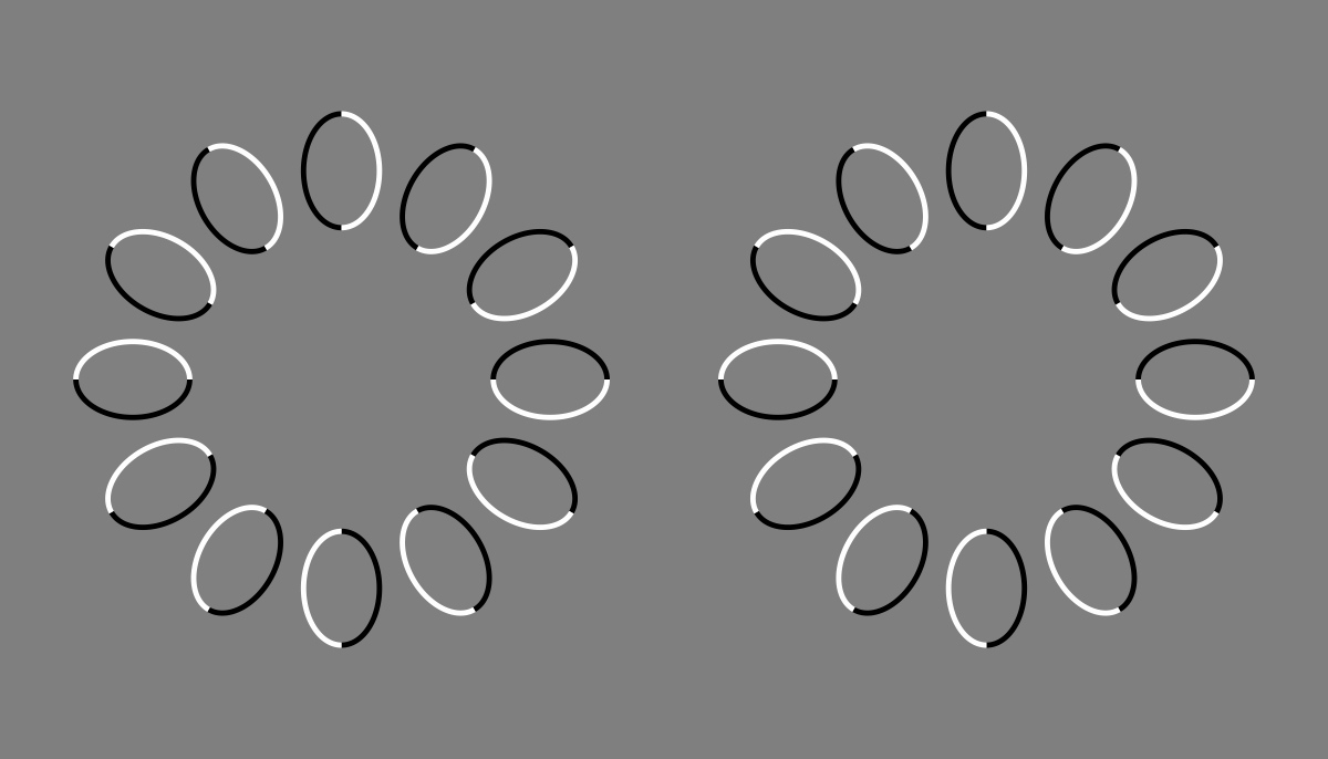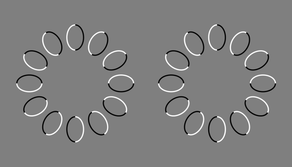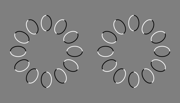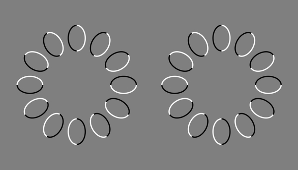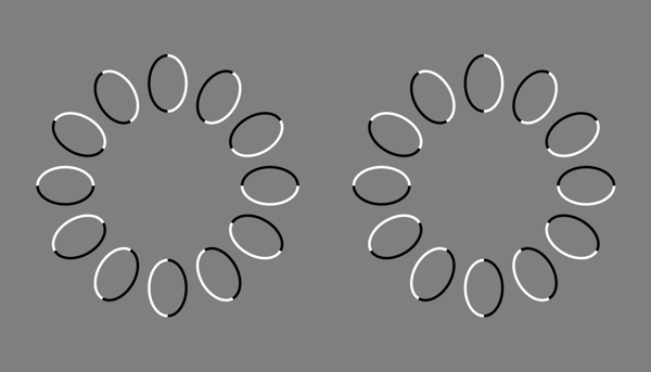 左のリングは反時計回り、右のリングは時計回りに回転して見える。