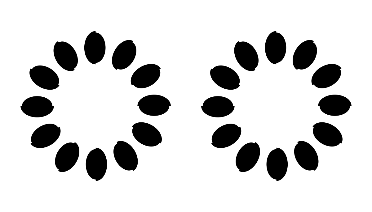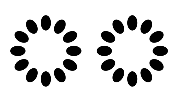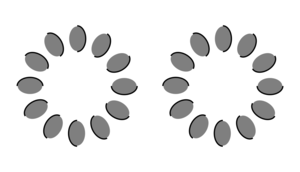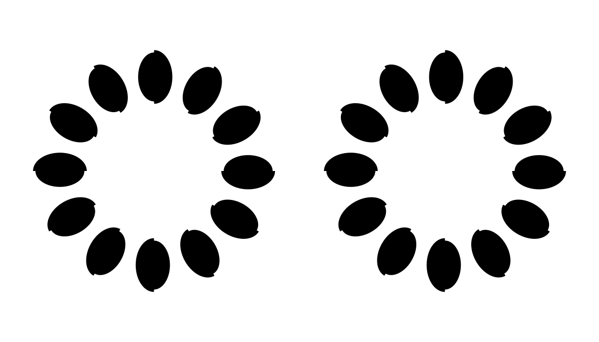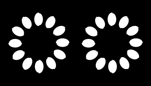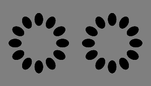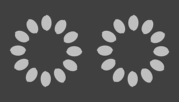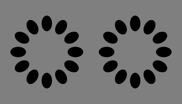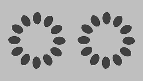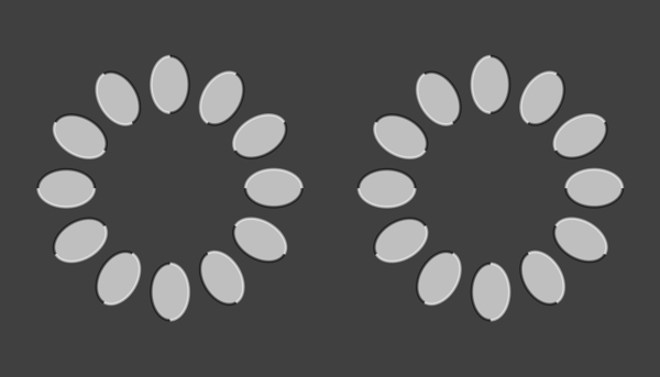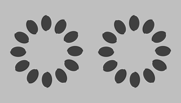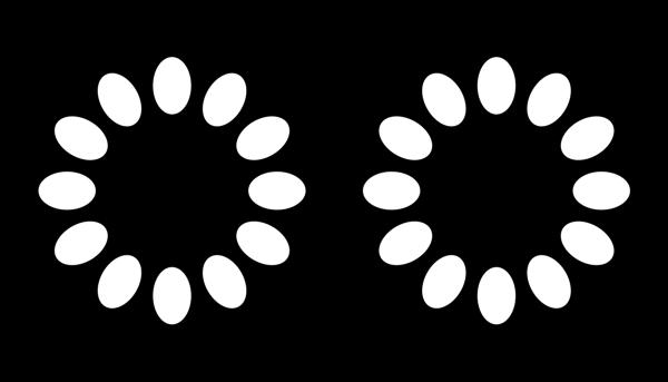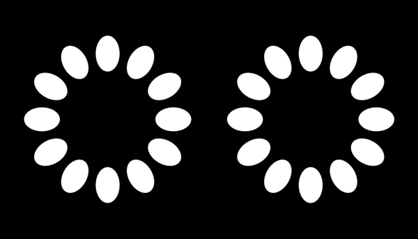 Rings appear to rotate clockwise constantly, though they actually rotate counterclockwise.