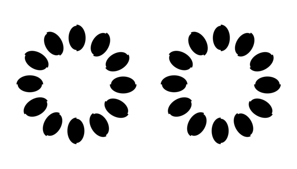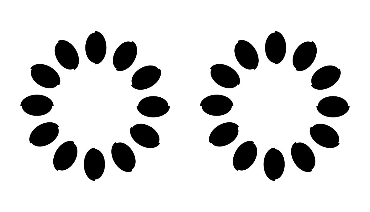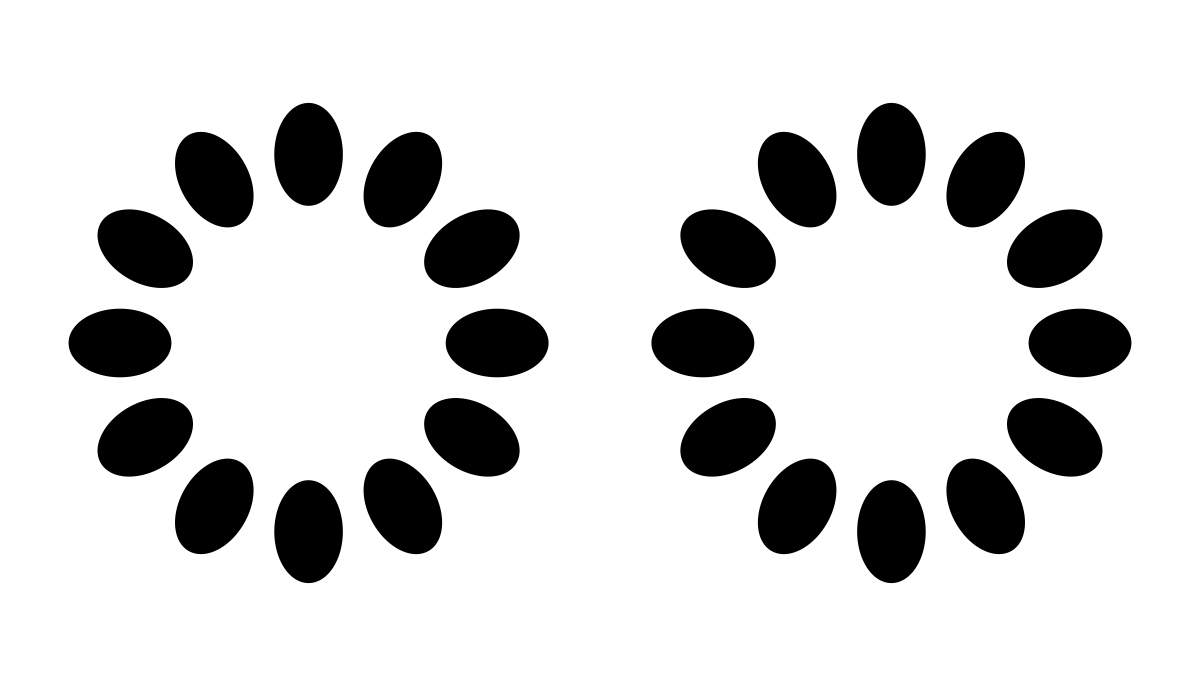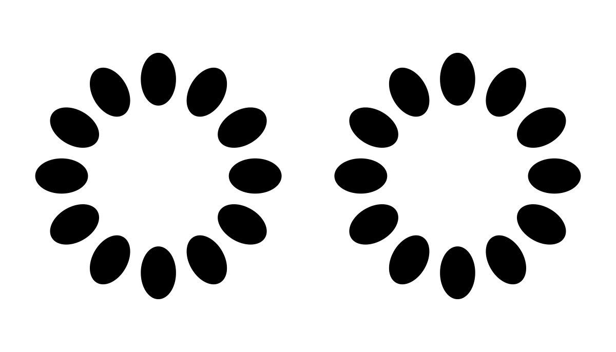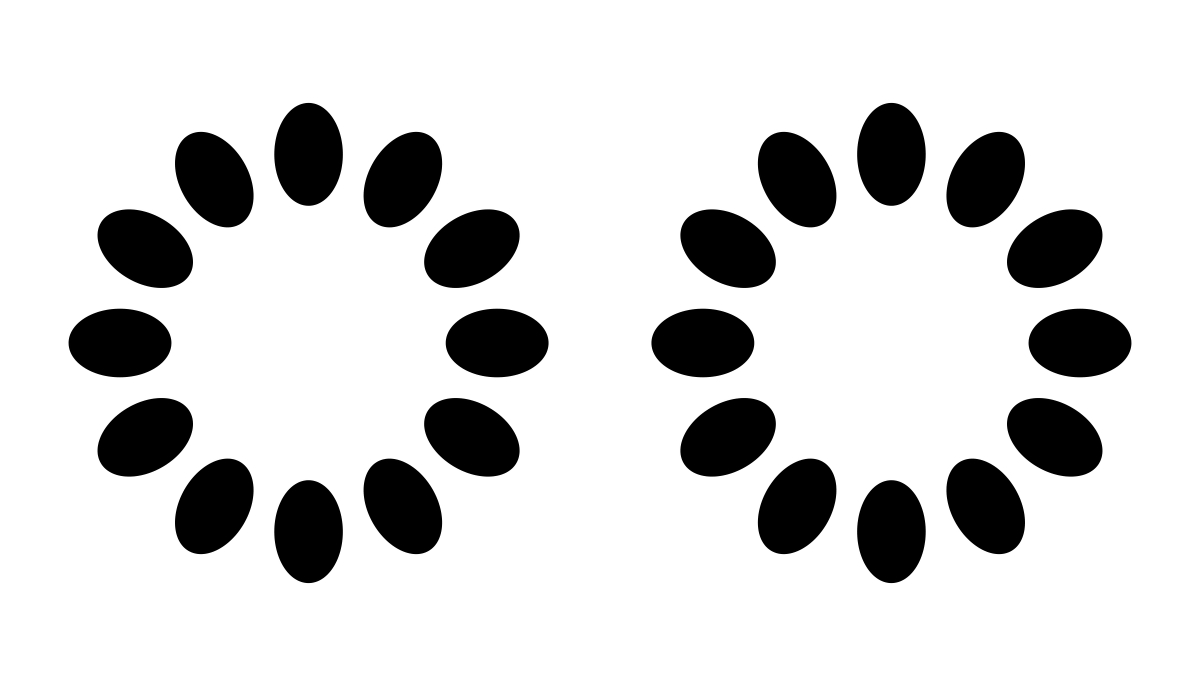 Rings appear to rotate clockwise constantly, though they actually rotate counterclockwise.