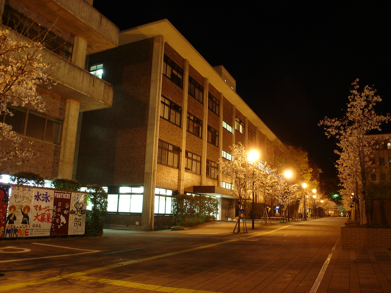 夜の啓明館(心理学専攻の実験室がある)(2007年4月5日)