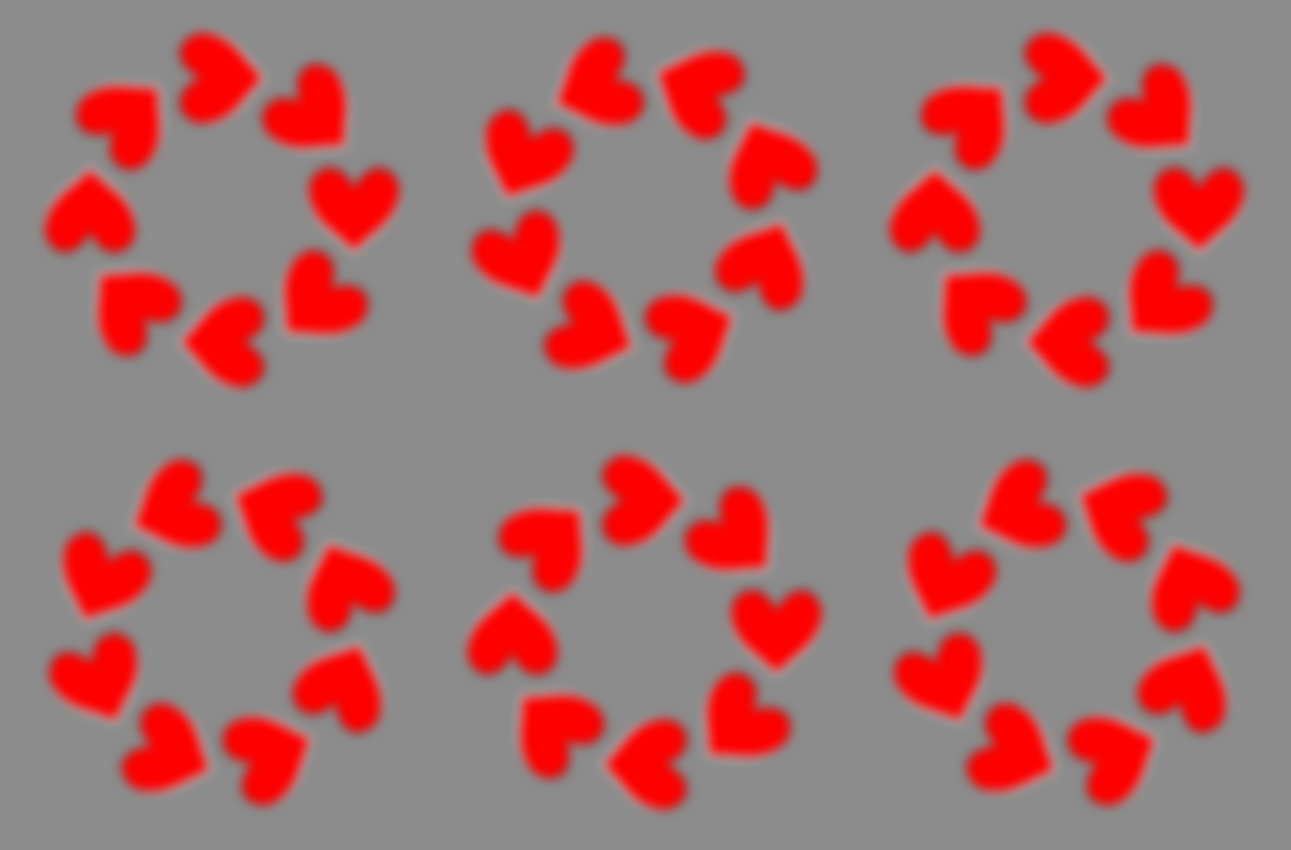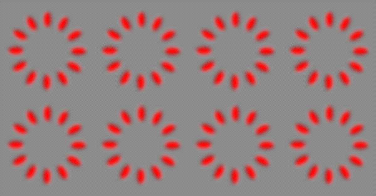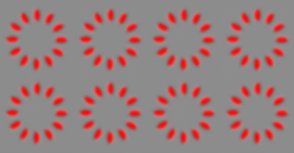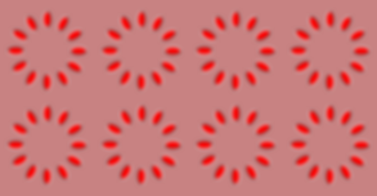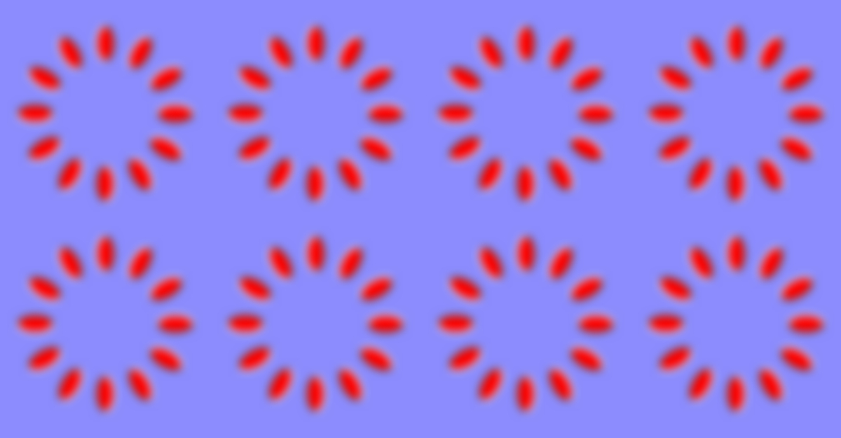 The upper row appears to wobble rightward whereas the lower one to move leftward.