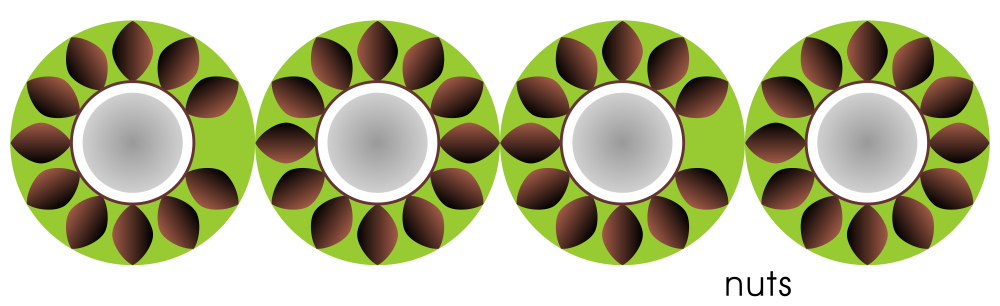 Rings of coconuts appear to rotate.
