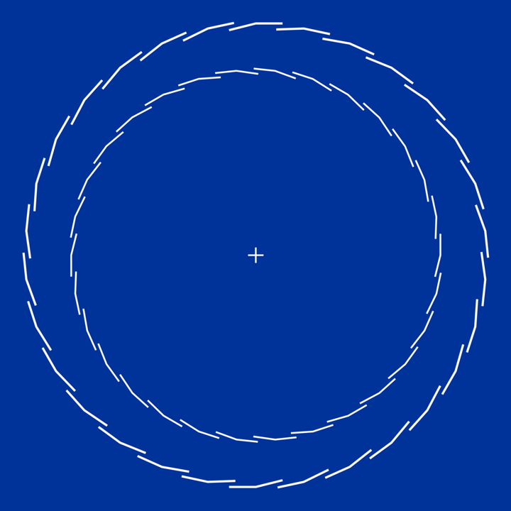 The inner ring appears to rotate counterclockwise when observers approach the image fixing their eyes on the center while it appears to rotate clockwise when they leave the image.