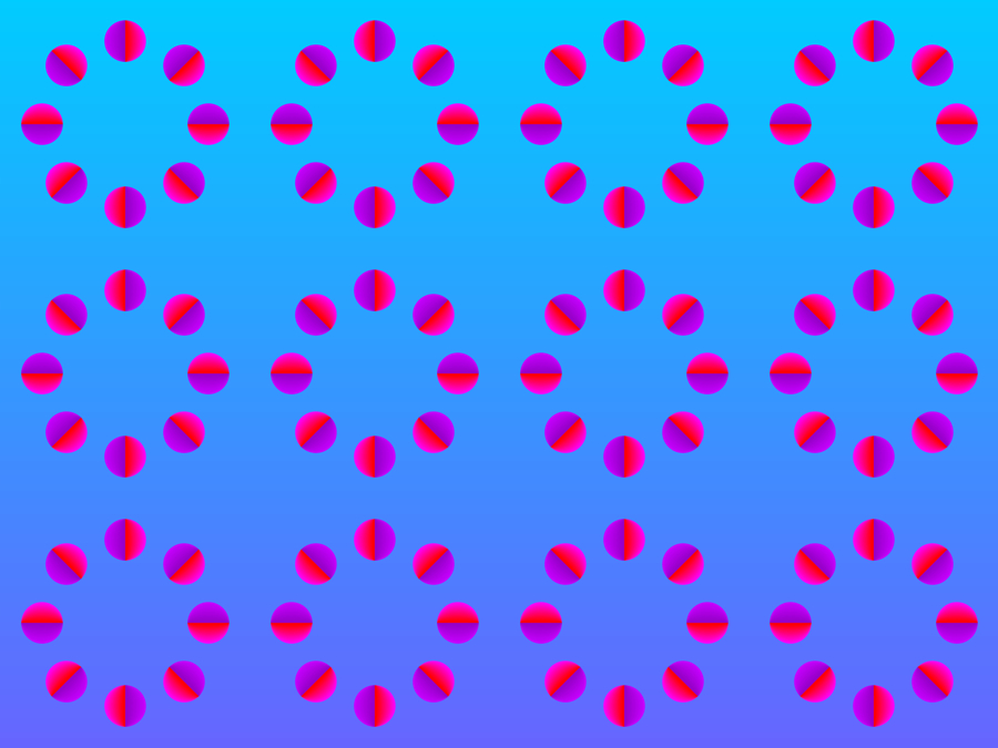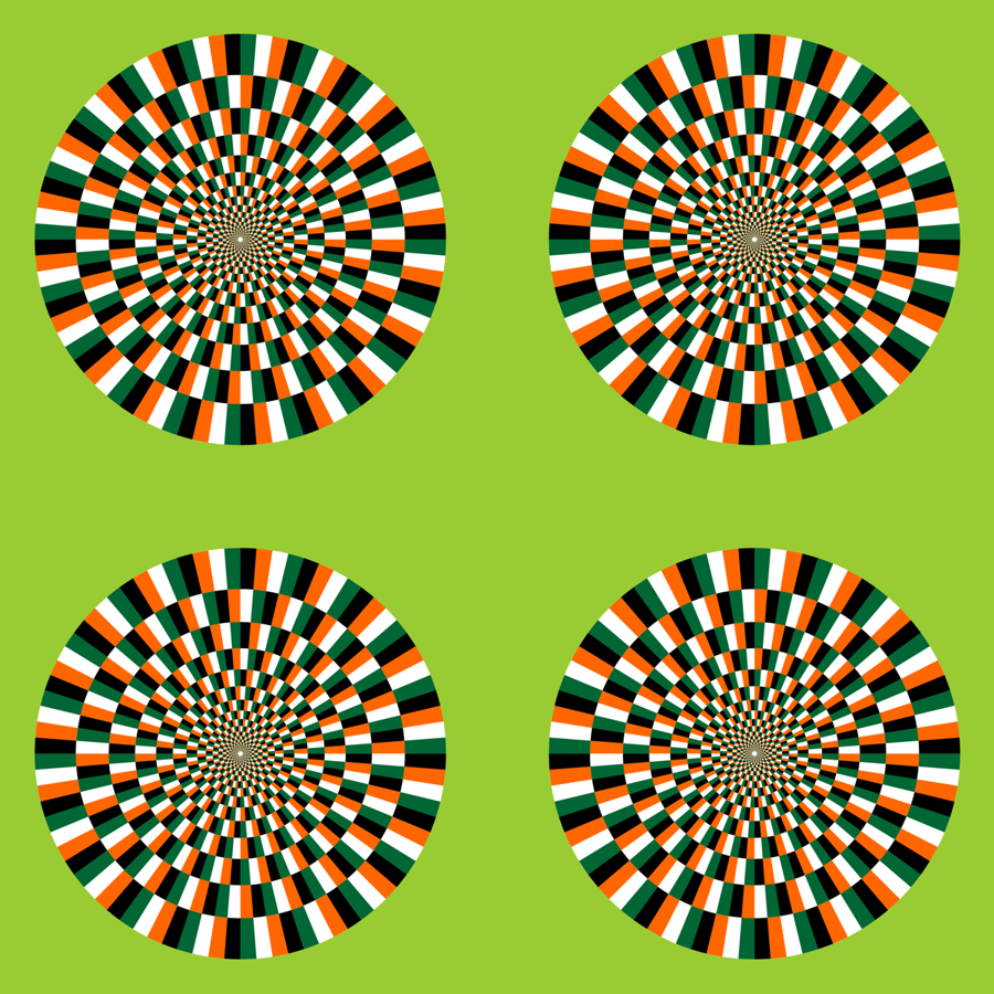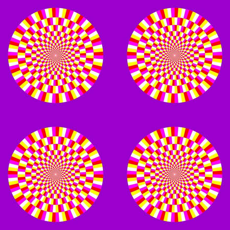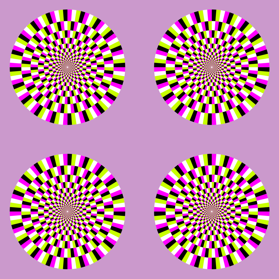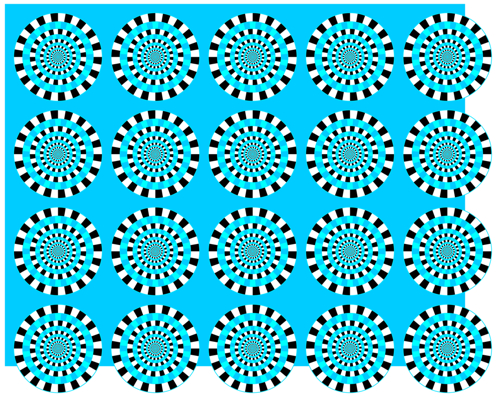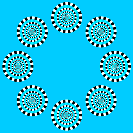 Triggered by blinking, saccade or flicker, water wheels appear to rotate quickly.