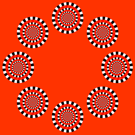 Rings appear to rotate when observers approach or leave the image fixing their eyes on the center.