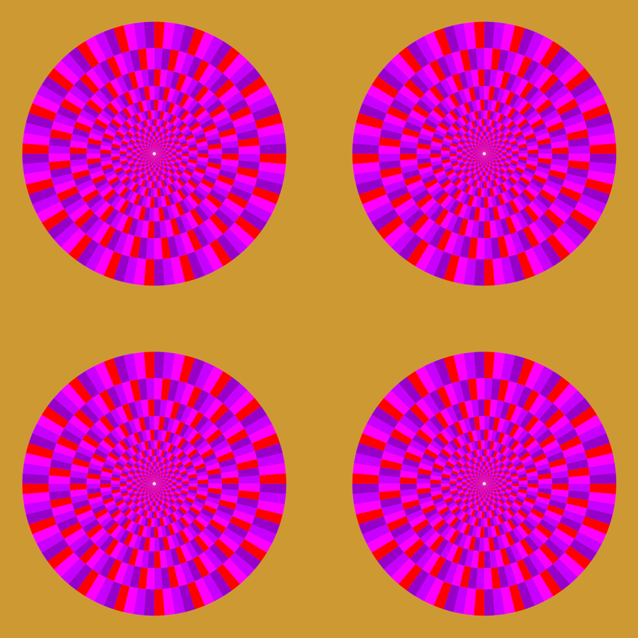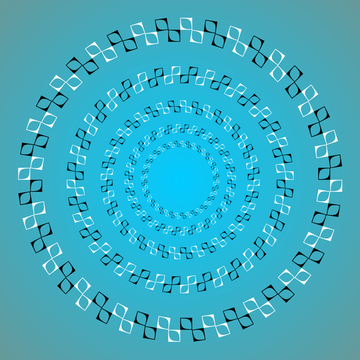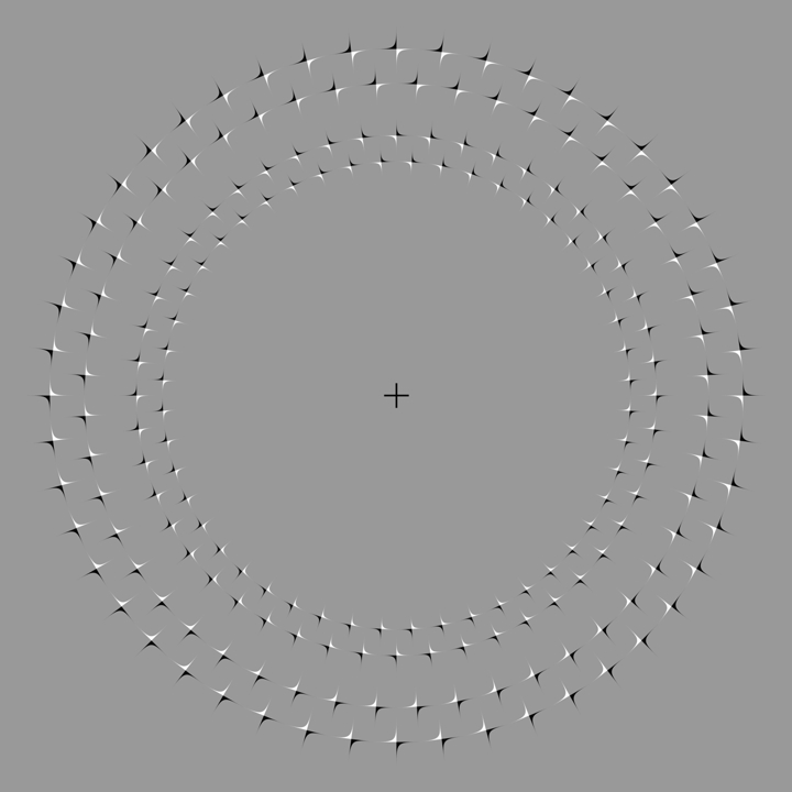 Rings appear to rotate when observers approach or leave the image fixing their eyes on the center. Concentric rings appear to be distorted.