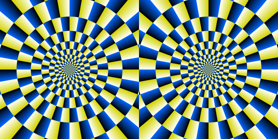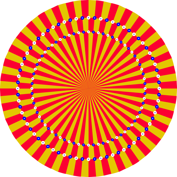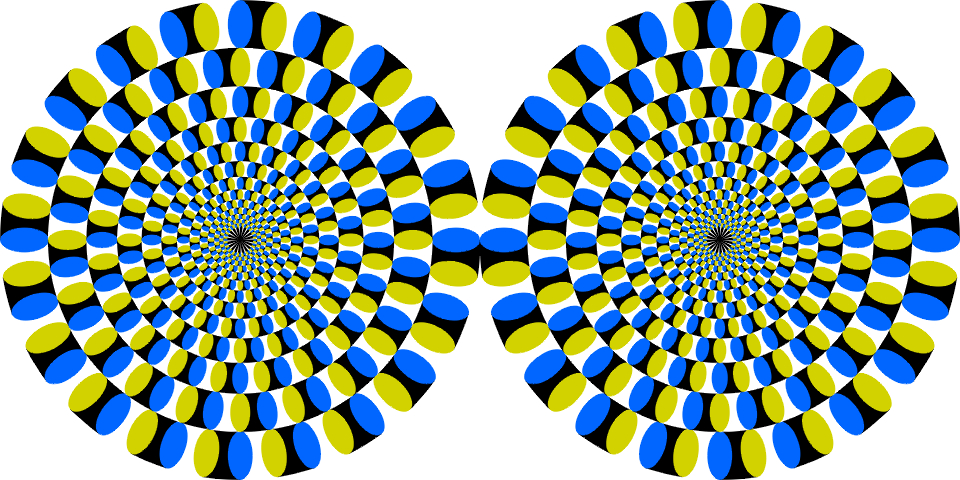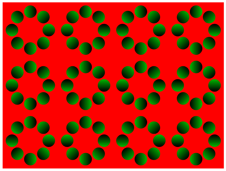 Rings appear to rotate when obsevers approach or move away from this image fixing their eyes on the center.