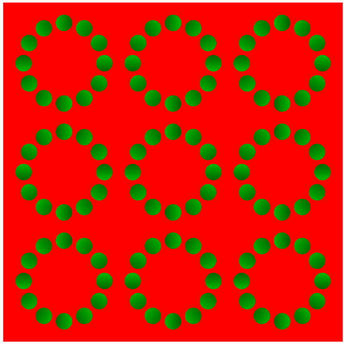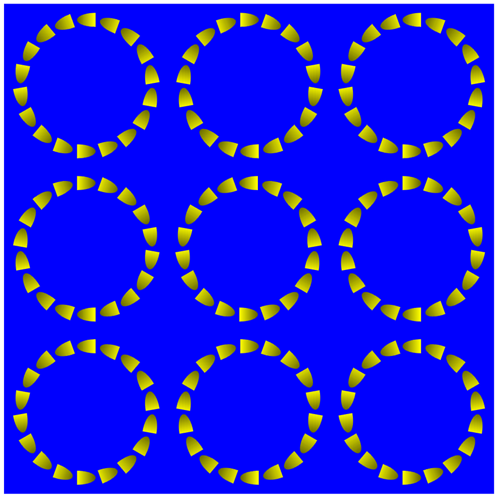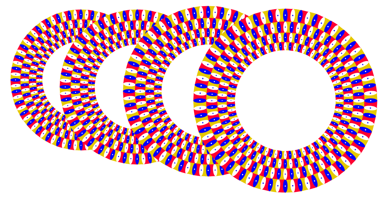 Rings appear to rotate without effort. On the other hand, they appear to rotate in the opposite direction when observers see this image keeping blinking.