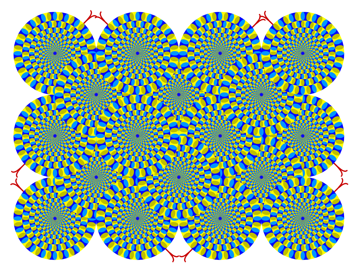 This is a color-changed version of the original "Rotating snakes". I hope this variation gives a more illusion magnitude than does the original.