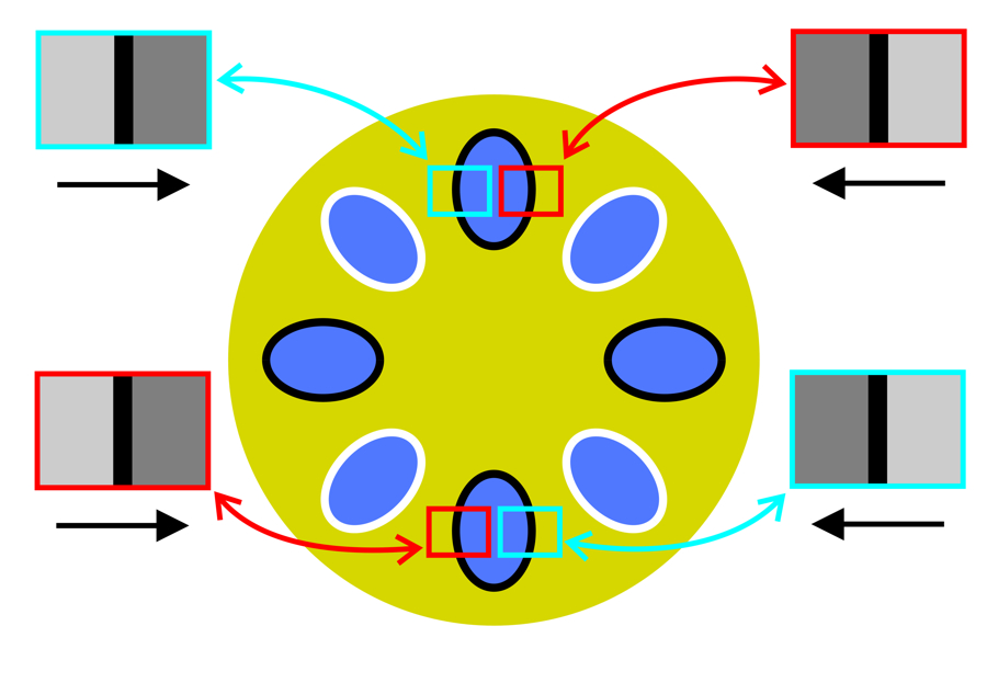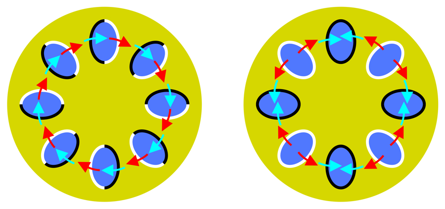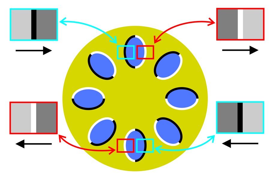 回転して見える錯視とそのコントロール図形の局所的な動きの図