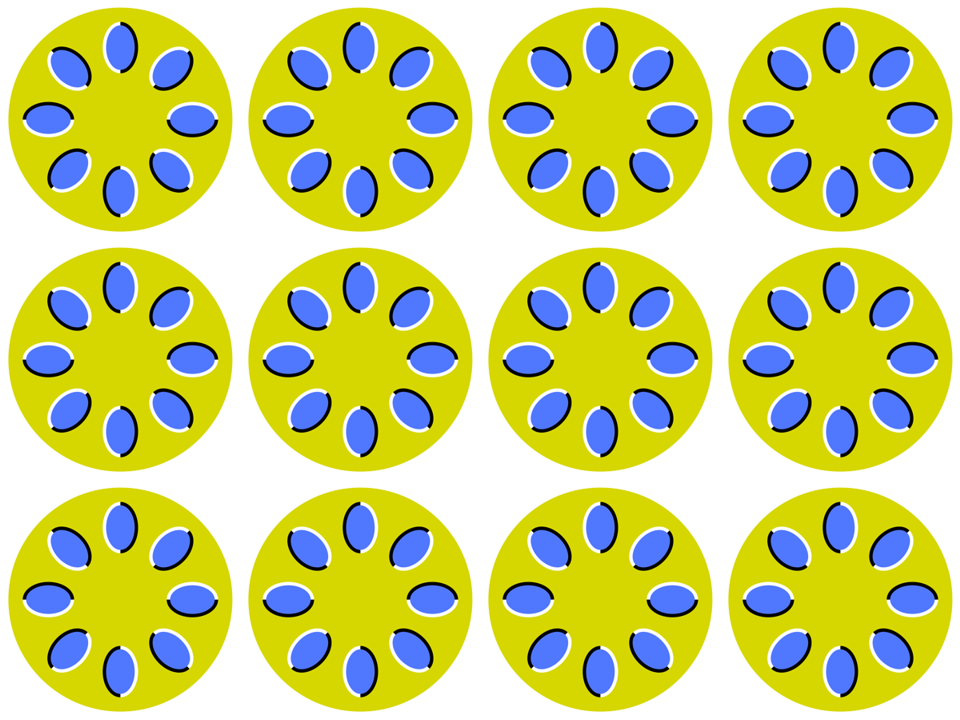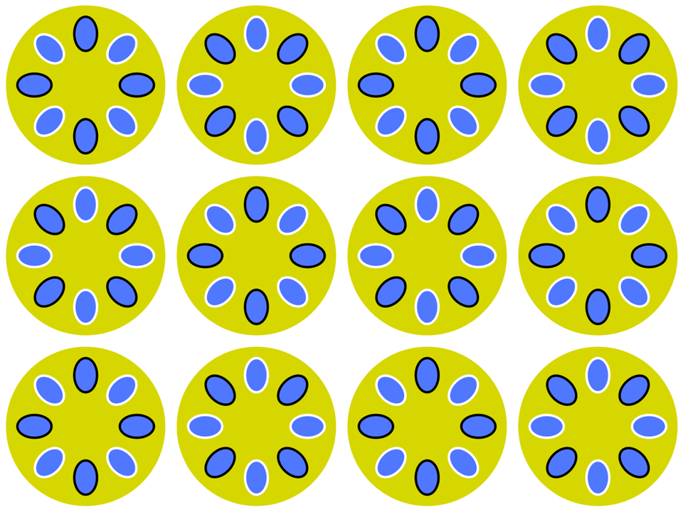 局所的には錯視的動きはあるが、このリングは全体としては回転して見えない。