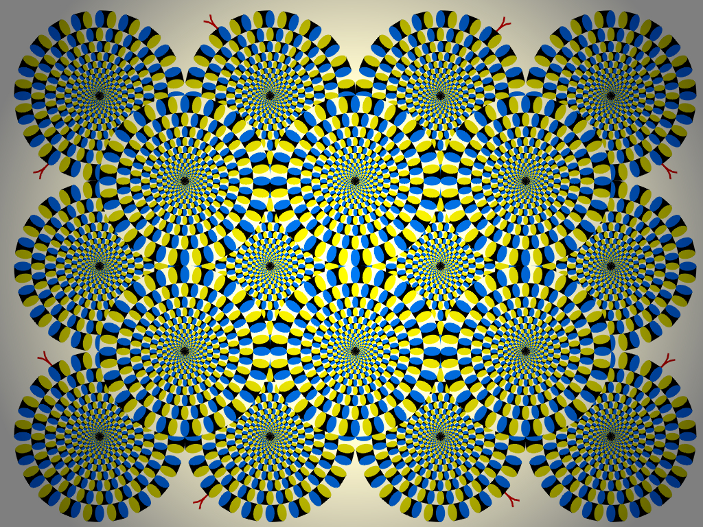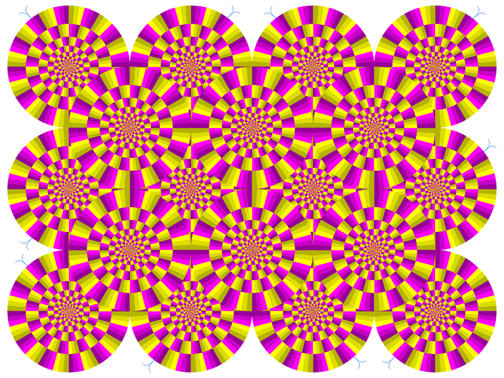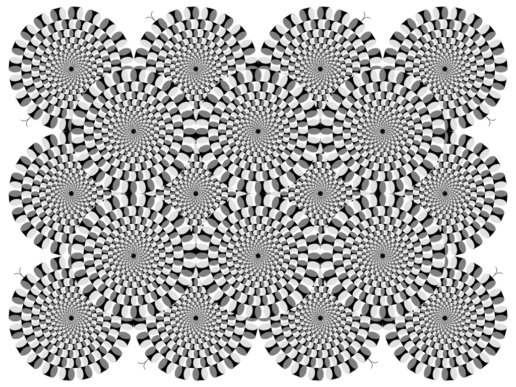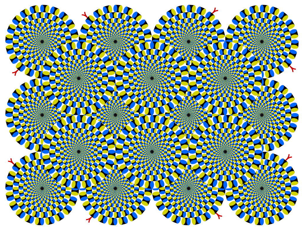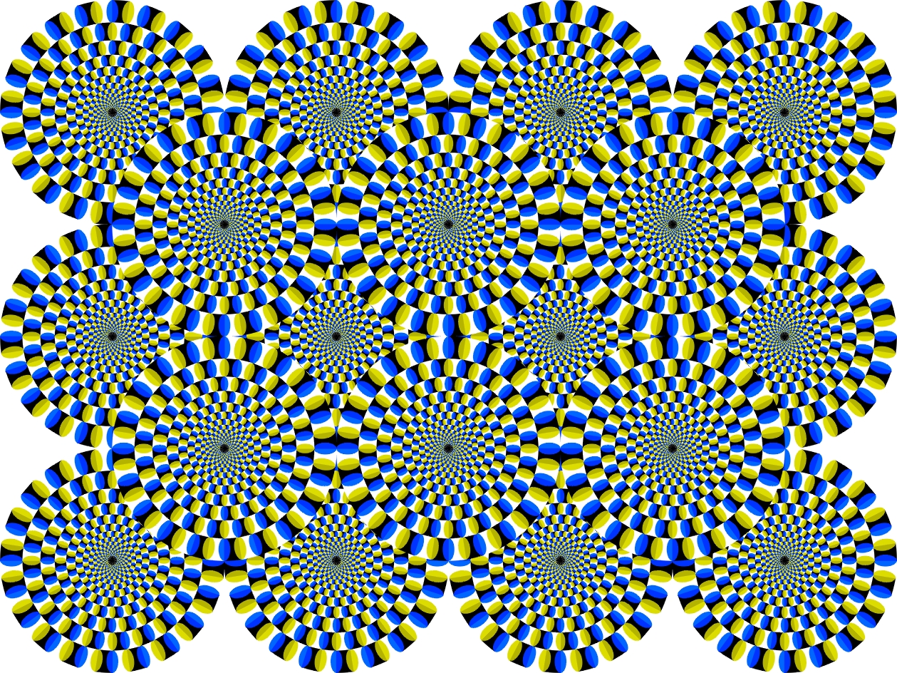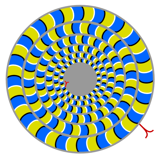 Each ring appears to rotate slowly without effort. In this case, the direction of rotation is constant. When observers keep blinking, each ring appears to rotate quickly. In this case, the direction of rotation is not constant. Attention can change the direction.
