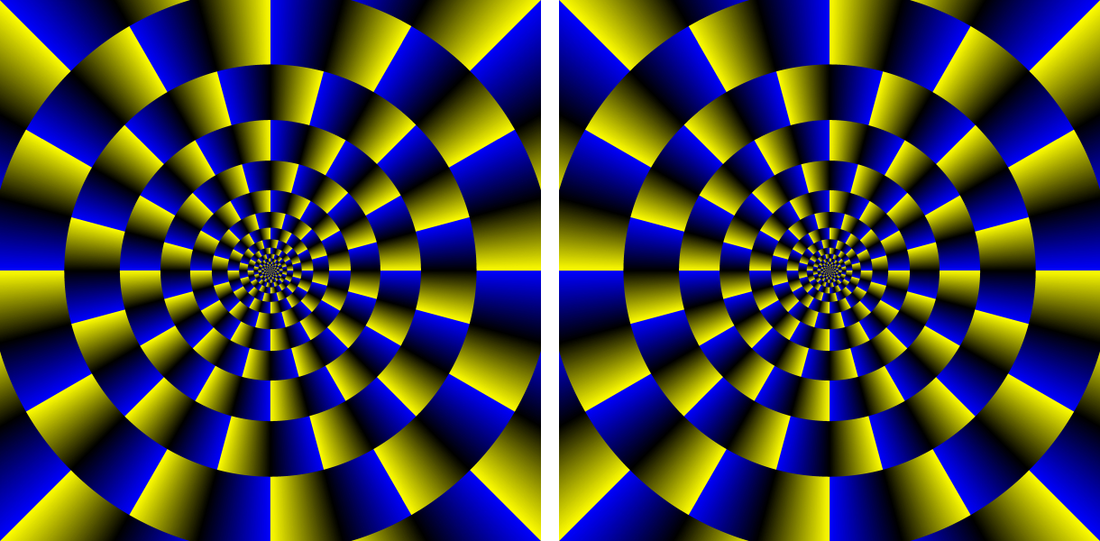 Each ring appears to rotate slowly without effort. In this case, the direction of rotation is constant. When observers keep blinking, each ring appears to rotate quickly. In this case, the direction of rotation is not constant. Attention can change the direction.
