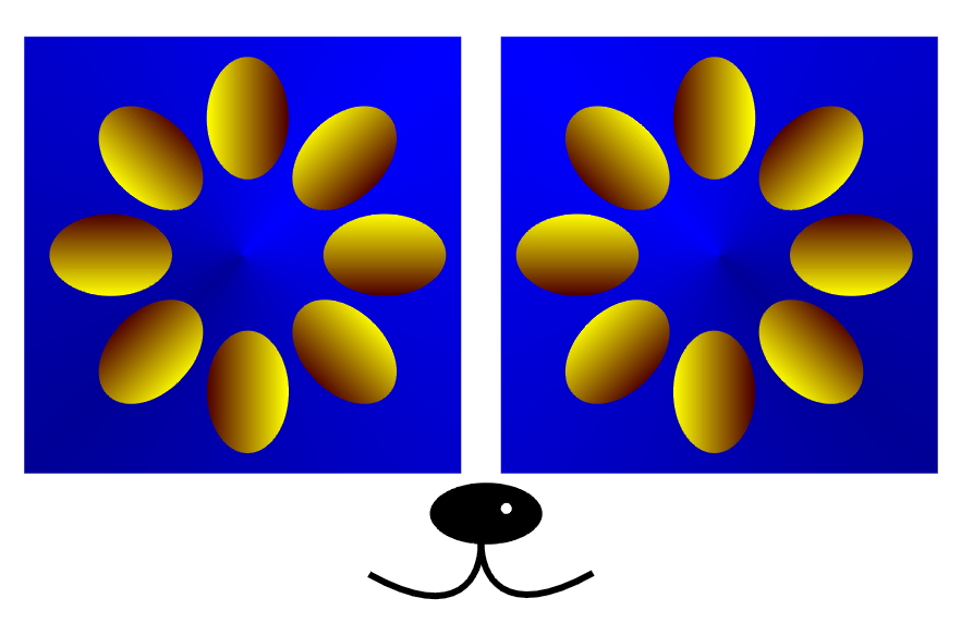The left ring may appear to rotate clockwise while the right one counterclockwise. However, keeping blinking reverses these directions.