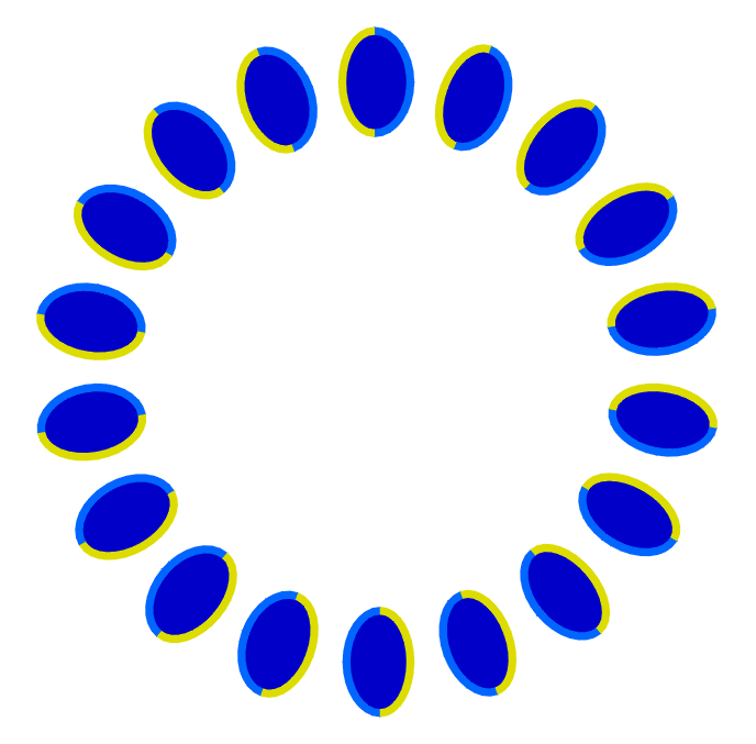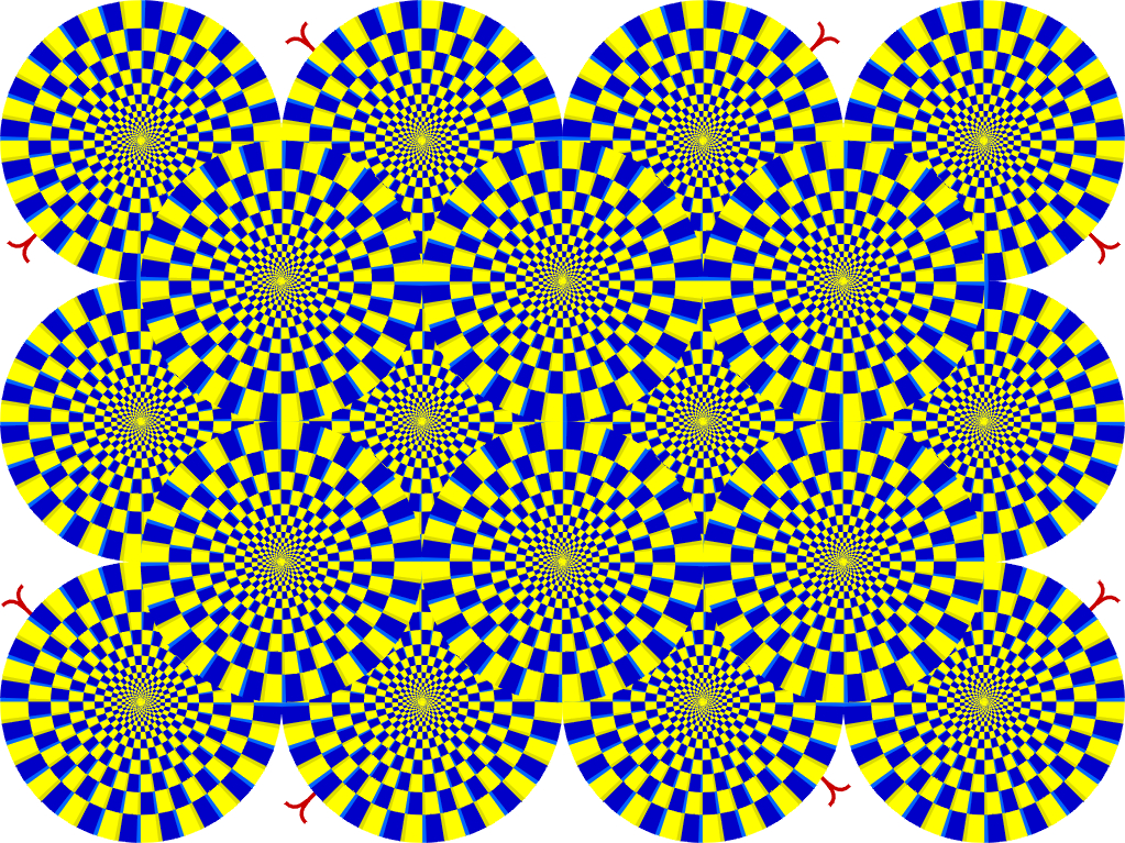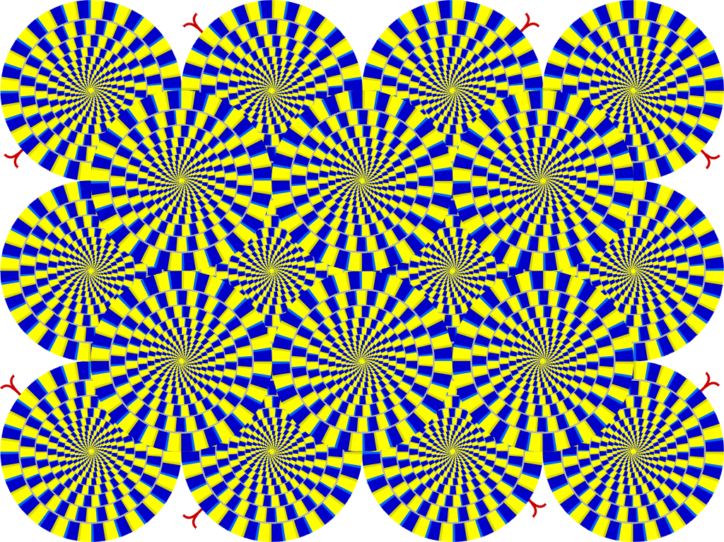 Each disk appears to rotate spontaneously. In addition, quicker illusory rotation can be observed when observers keep blinking.