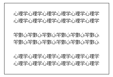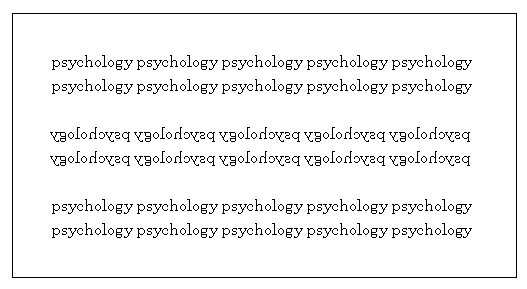 Letter-rows of "psychology" appear to tilt counterclockwise irrespective of whether they are written in English (upper image) or in Japanese (Chinese characters) (lower image).