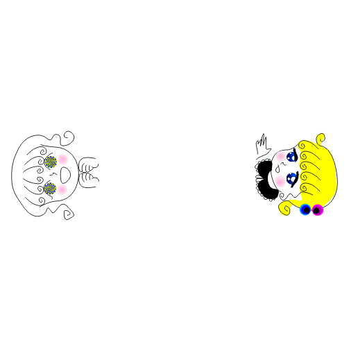 This animation is a reversible stimulus, where two appearances are observed. One is that the face with white hair appear to rotate clockwise while the other face with yellow hair appear to rotate counterclockwise. The other appearance is that the two faces appear to go to and fro as if the two faces collided each other and bounced. When observers see the faces go to and fro, the face appears to change to the other face. Moreover, the frames where two faces meet appear to extinguish. On the other hand, they are visible when observers see rotation.