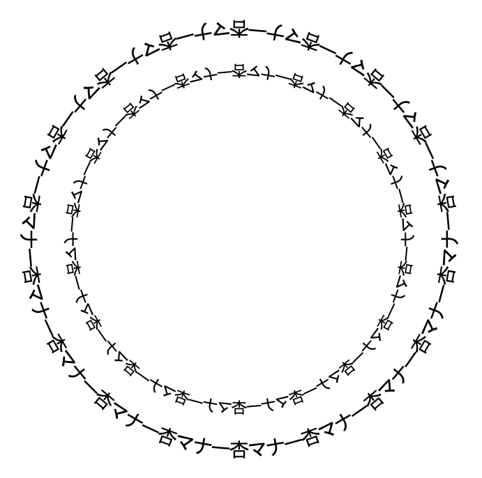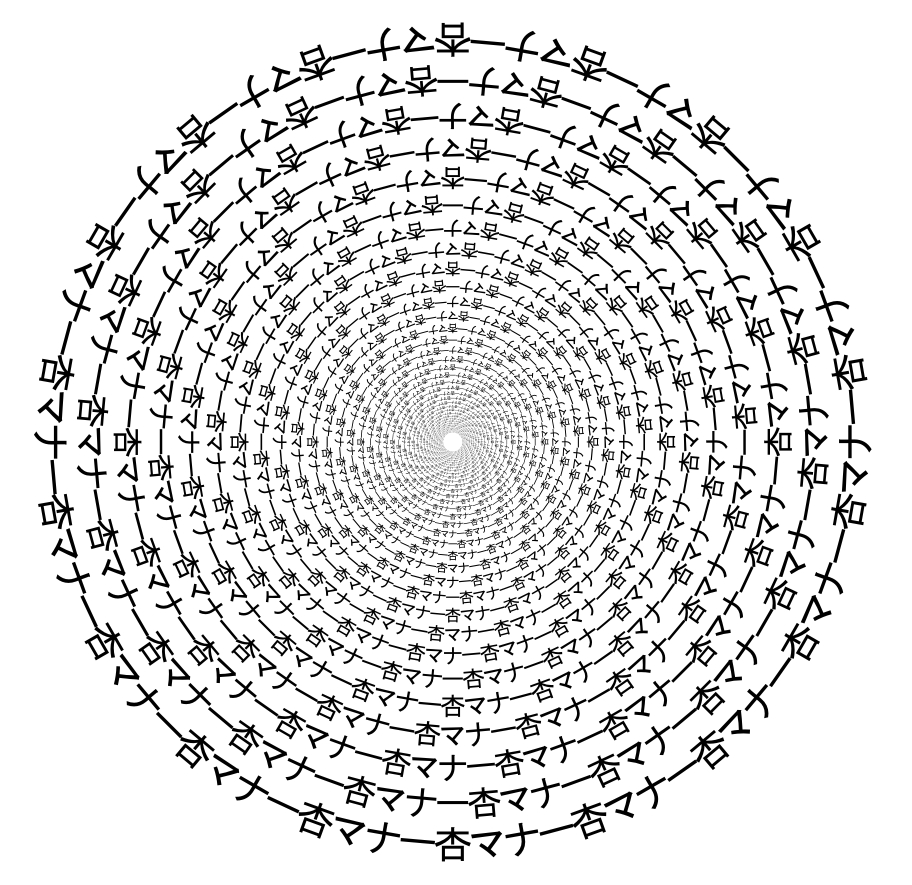 Concentric circles of a Chinese character and Katakana letters "Anzumanaa" gives a distorted appearance.