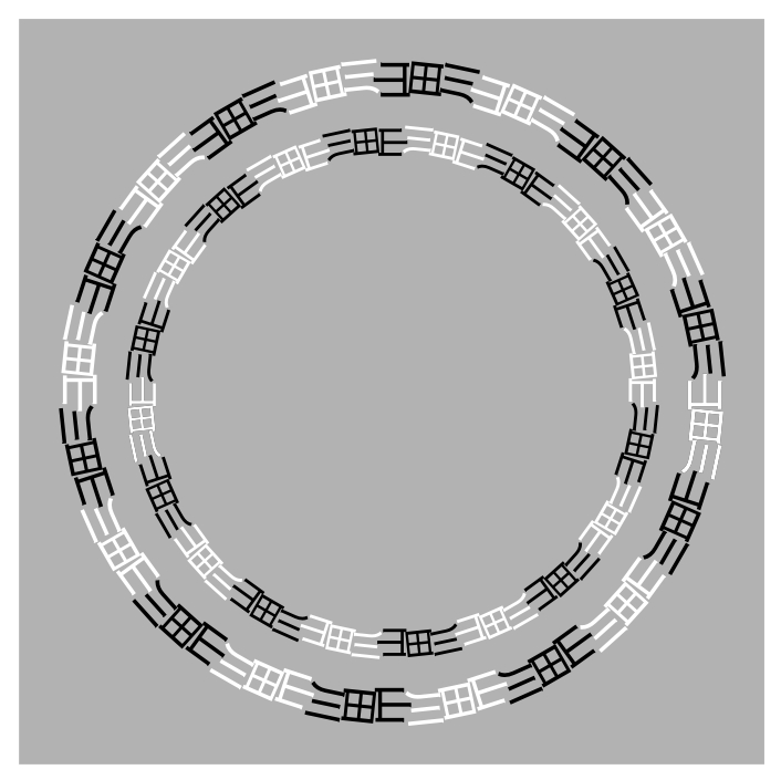 Something appears to flow in the spiral waterways. This illusion (Leviant, 1996) is called Enigma illusion or simply Enigma. Here I propose to call the effect "Leviant illusion".