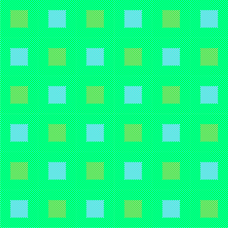 Although the squares are of the same gray, some appear to be tinted orange while the others appear to be tinted pink.