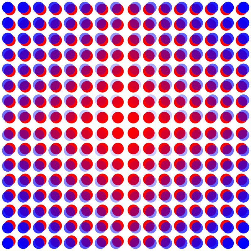 The center of image appears to bulge out though circles are aligned vertically and horizontally.
