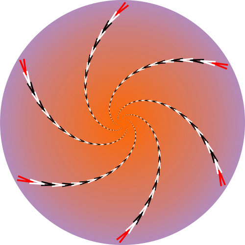 "Pack of rotating red snakes"