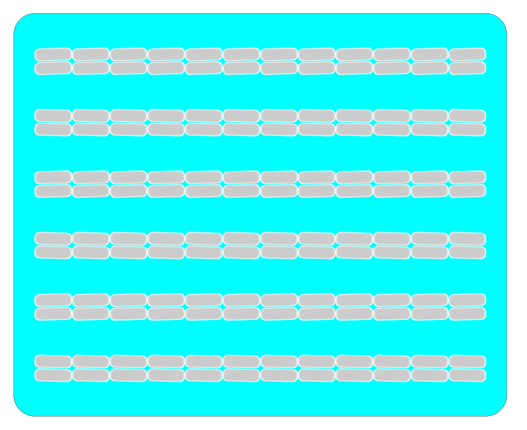 「もうちょっと細かったらビフィズス菌らしかったんですけど」というので上図を作ったものの、小さくすると下図のようになり、斜めエッジの錯視(illusion of oblique edges)はなぜか低空間周波数領域で錯視量が多いので、錯視は弱くなる。一方、色の錯視の方は、高空間周波数領域で強いので、効果は大きくなる。