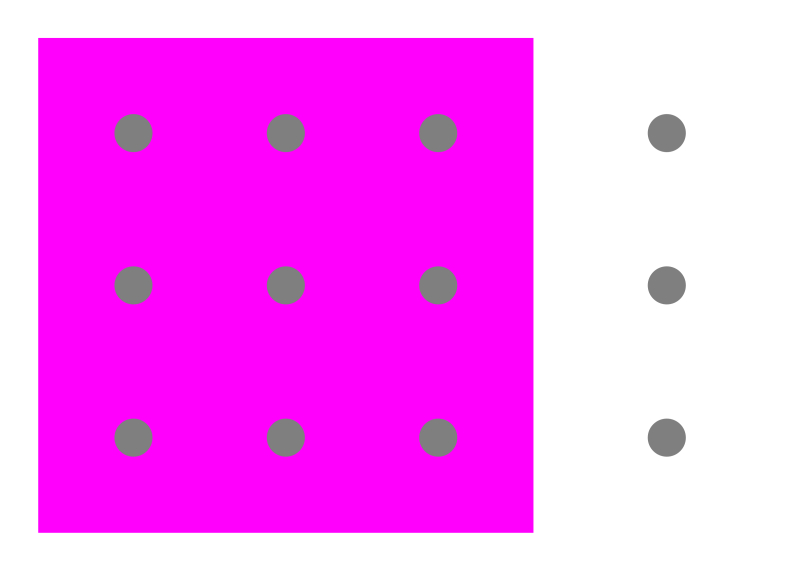 The gray circles embedded in the cyan square appear to be reddish, though they are the same gray as those shown at the right.
