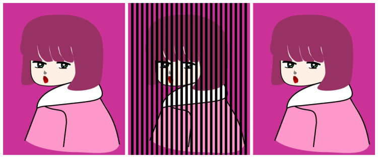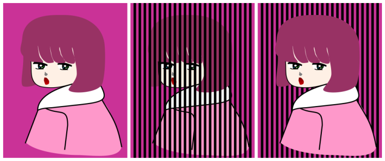 The grating outside the object might also afford this effect (the rightmost