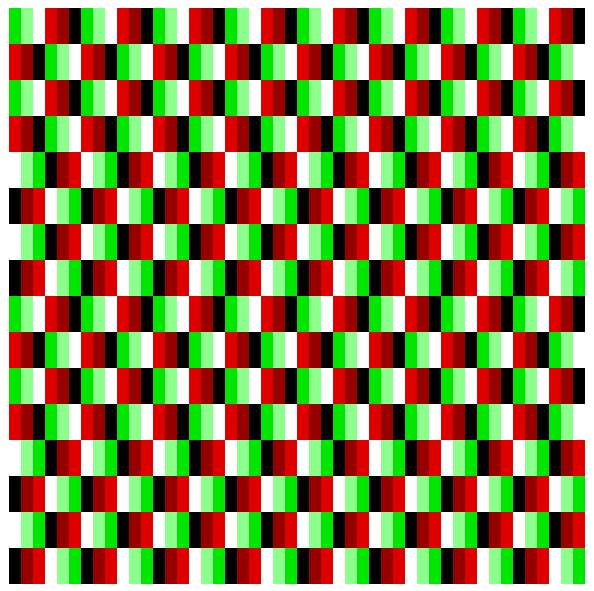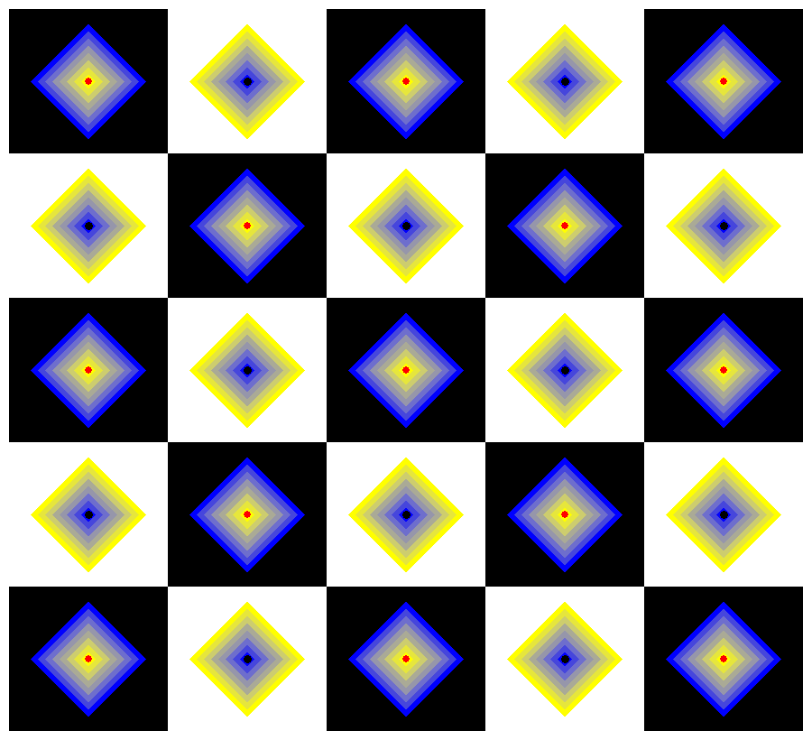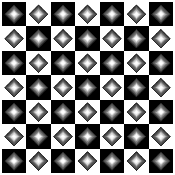 Piles of diamonds on black squares sometimes appear to move and include
