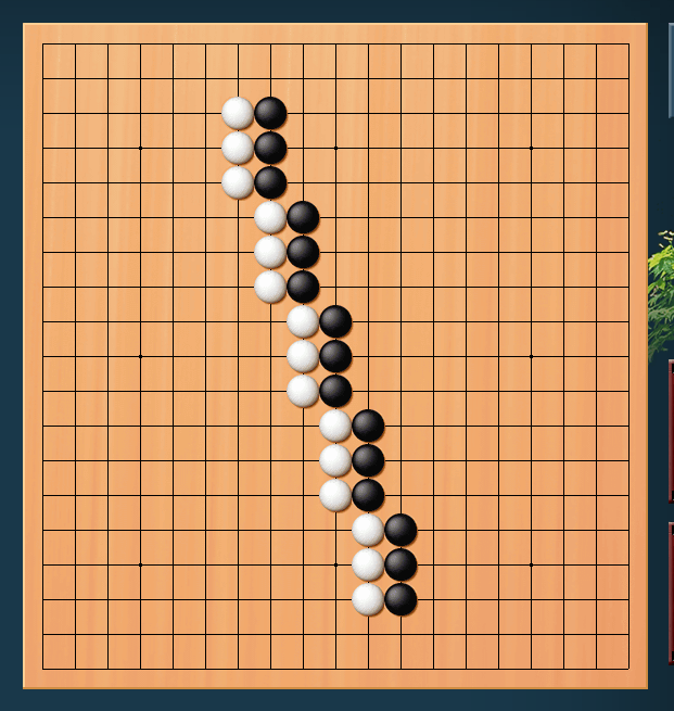 Each row of three stones (goishi) appears to tilt clockwise though each