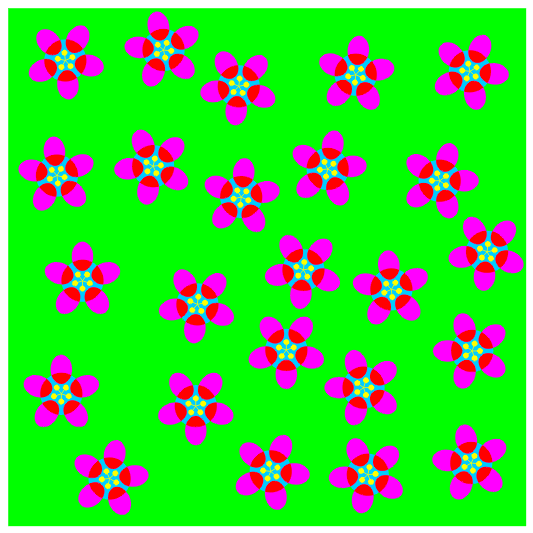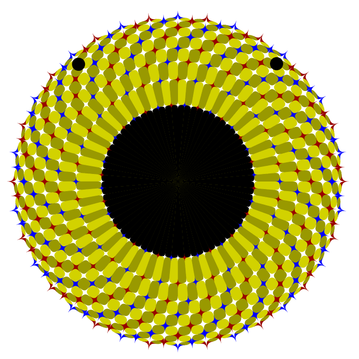 Spines are actually aligned in concentric circles but appear to form spirals. When observers approach or move away from the image fixating at the center, the spines appear to rotate. The mouth may appears to rotate counterclockwise a little.