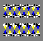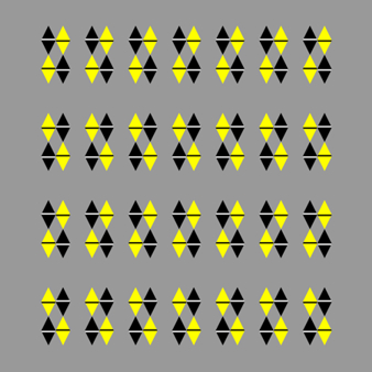 The first and third rows appear to tilt counterclockwise though the misalignment of line segments in each crossing is in the clockwise direction. The reversal is observed for the second and fourth rows.