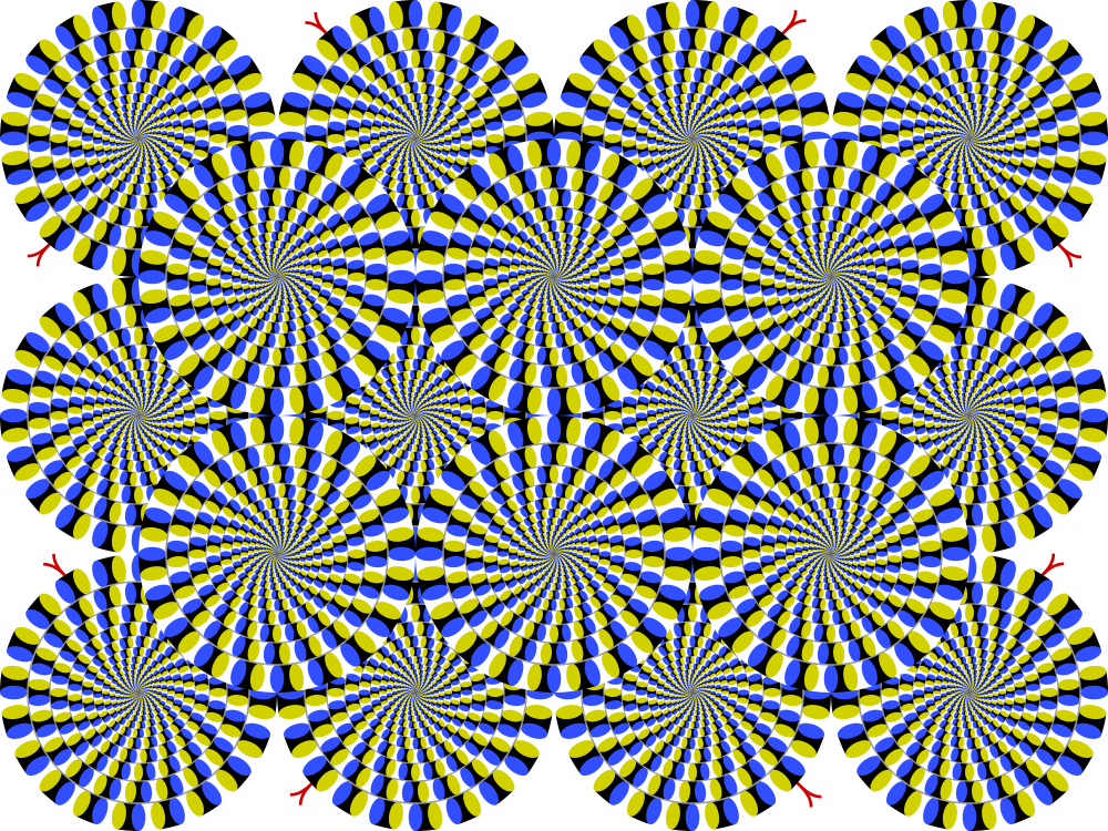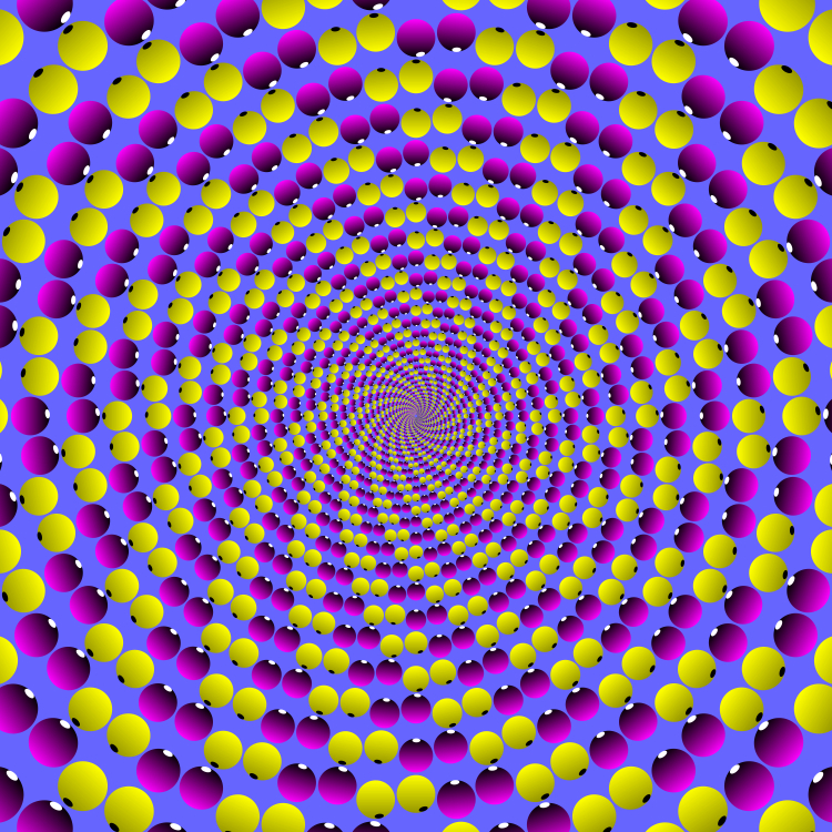 Each disk appears to rotate. Concentric circles appear to be spirals.
