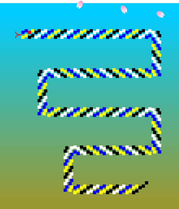 Each row of the "snake" is aligned vertically or horizontally but appears to tilt.