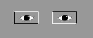 The diameter of the irises in the right image is half of that of the irises in the left image, but the former appears to be much smaller than it is.