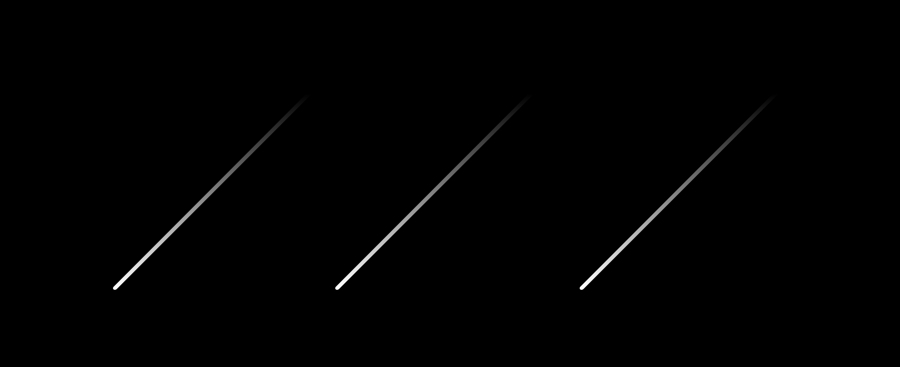 The three shooting stars are aligned in parallel, the lines appear to diverge upward.