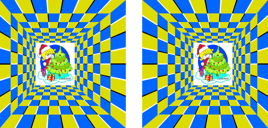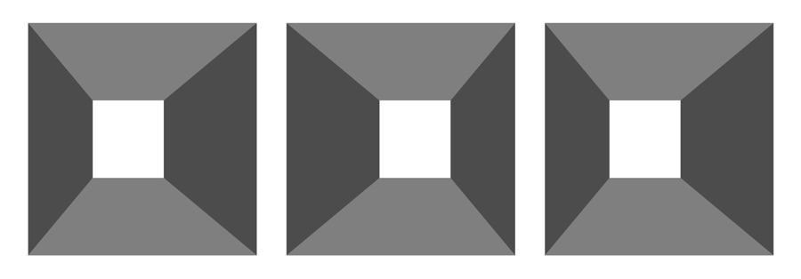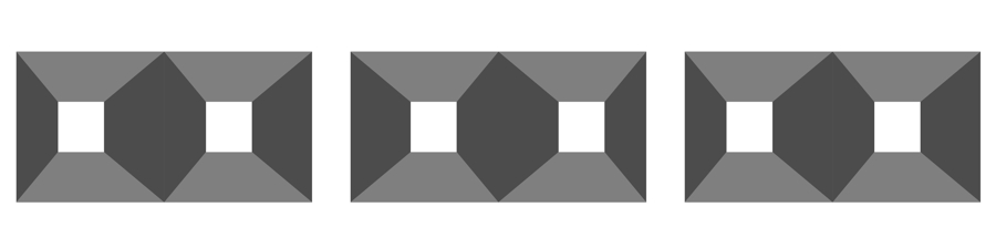 When observers stereoscopically fuse neighboring images, oblique edges appear to tilt in depth. Both edges of each of the floor, ceiling and the right and left sides, appear to form an acute angle, i.e. less than 90 degree. This means that a revolution is less than 360 degree in the stereoscopic vision!