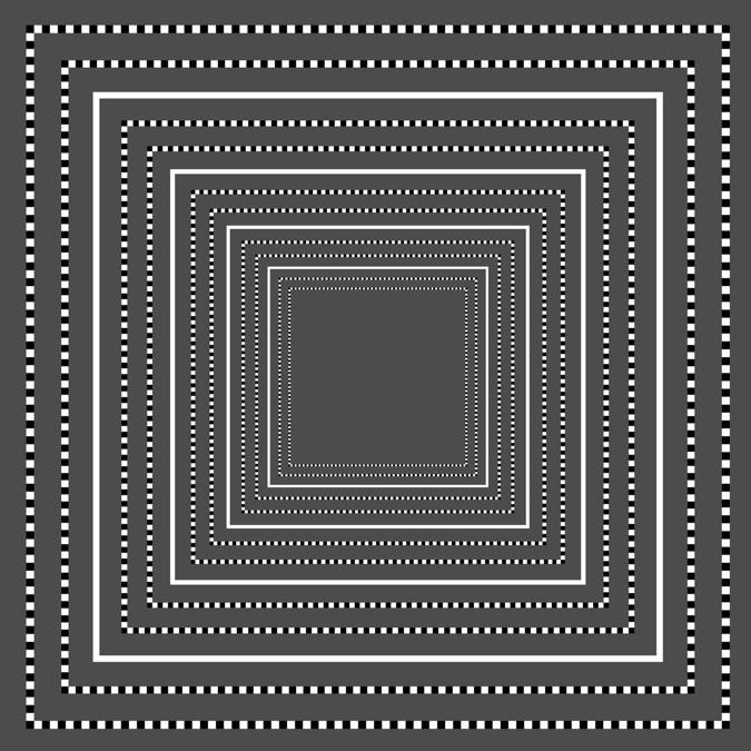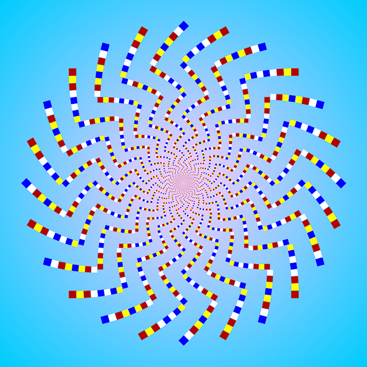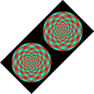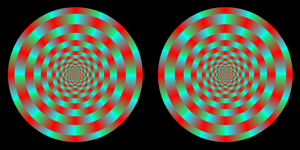 Each ring appears to rotate when observers fix their eyes at the center and approach or move away from the image.