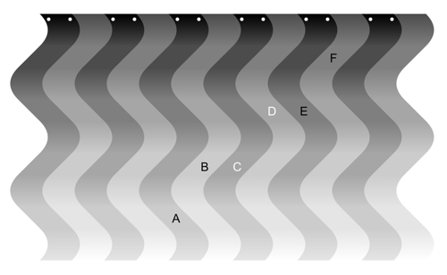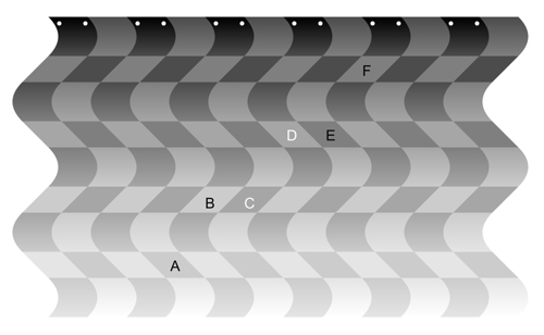A = B, C = D, and E = F in luminance. This type of display was presented by Todorovic (2006, Figure 4b).