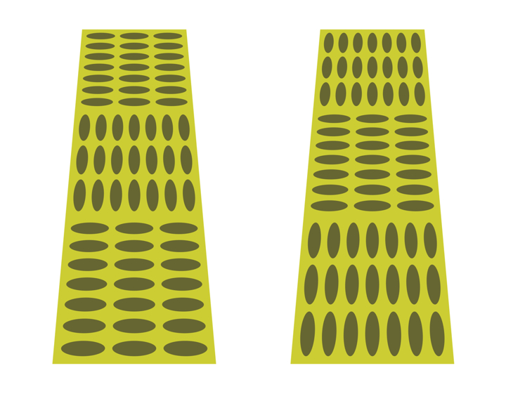 Blocks appear to tilt in depth as compared with the adjacent one(s), though the oblique sides of these trapezoids are straight.