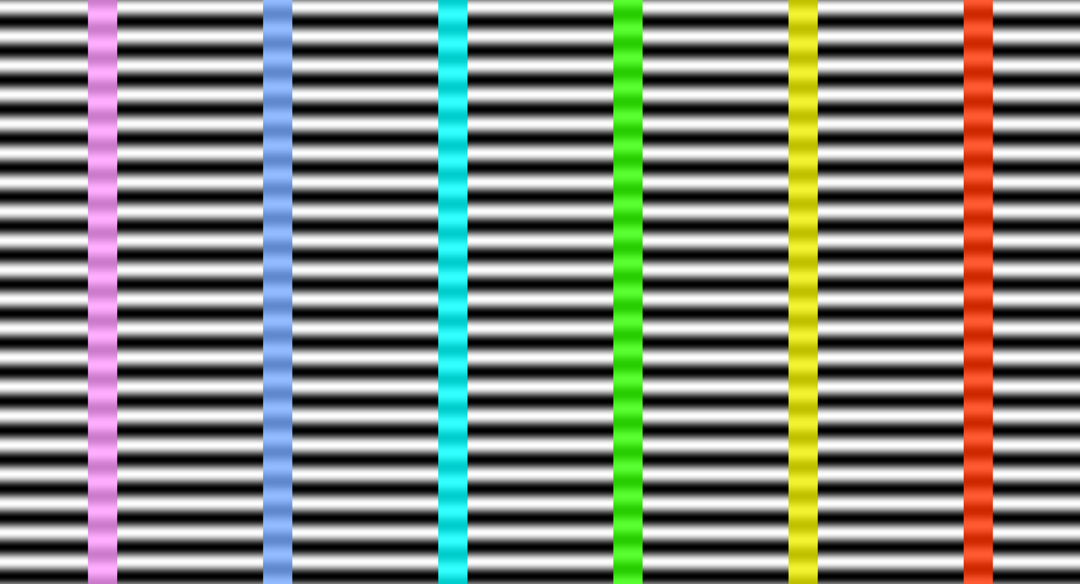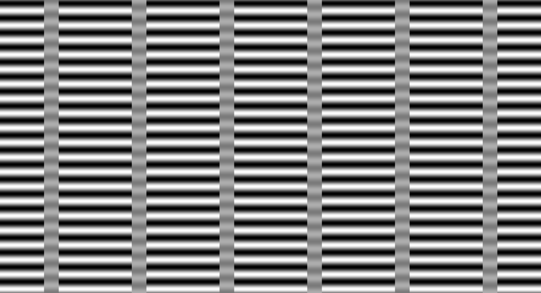 The second and fourth rows appear to move rightward while the rest leftward. In addition, the borders of the rows appear to tilt: clockwise, counterclockwise, clockwise, counterclockwise from the top to the bottom.
